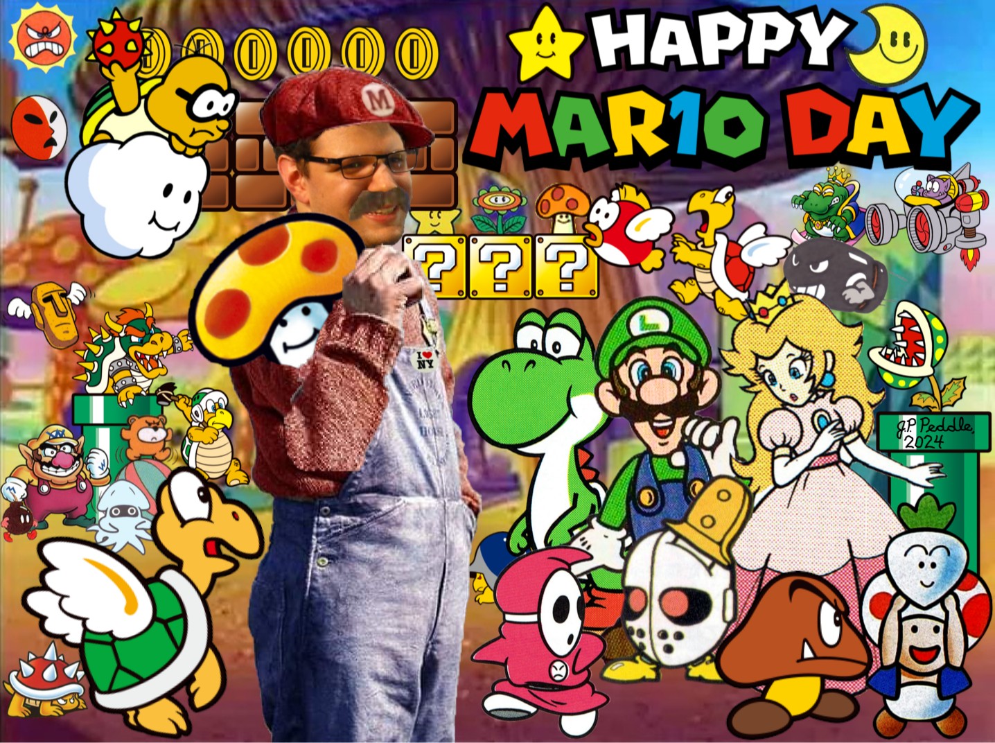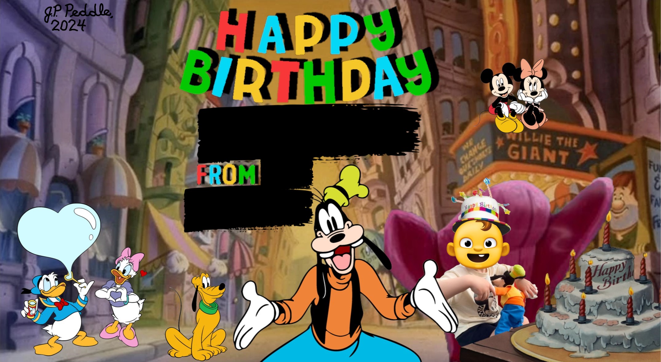 I enjoy crafting personalized collages for my family and friends as presents. Here are a few examples, with the recipients' names redacted and their faces emojied for privacy.