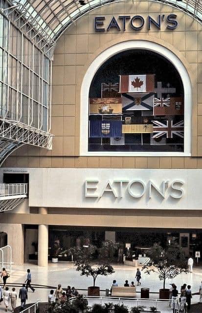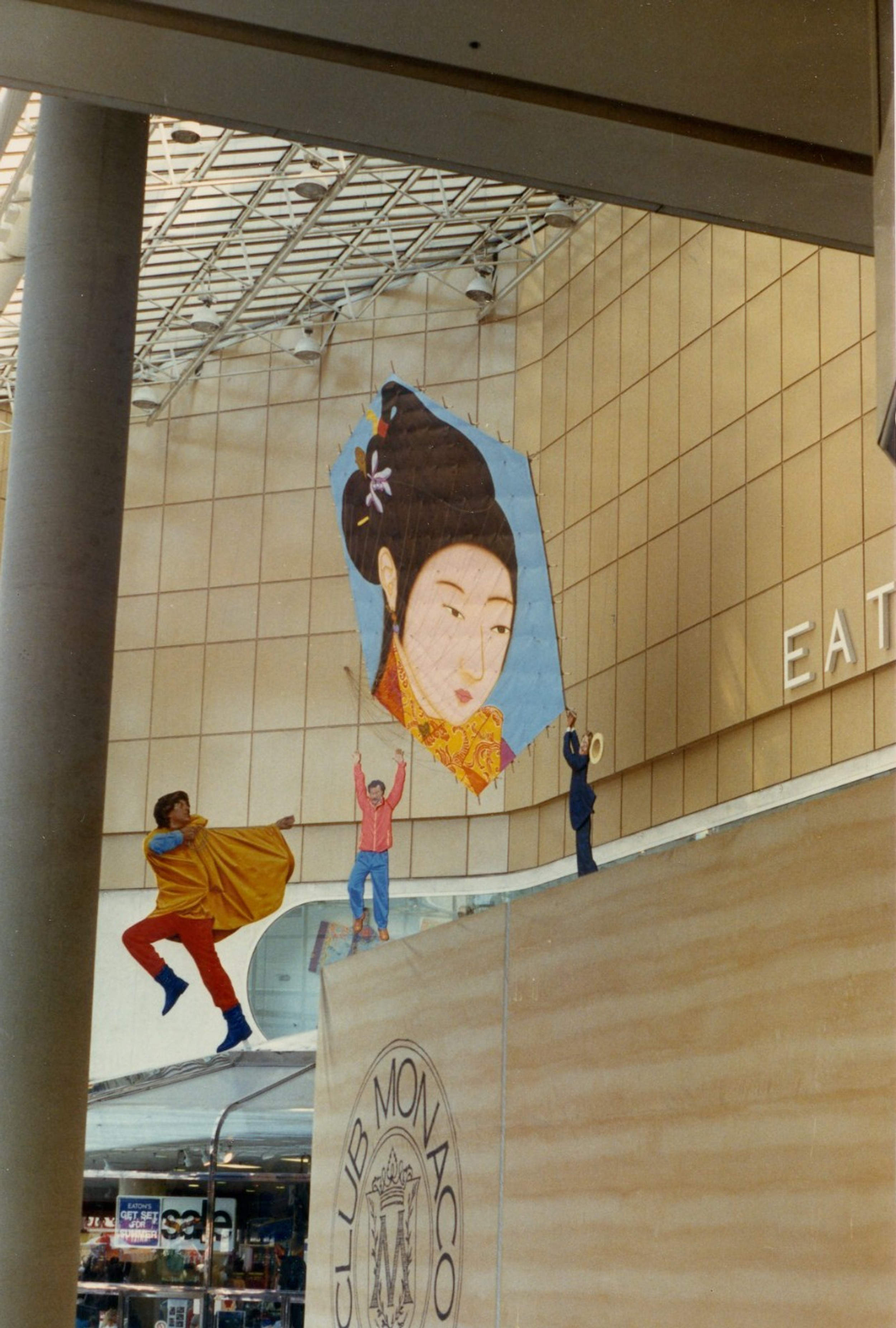Thankfully, Doug Duff's popular meeting spot, Shooting Fountain, and Michael Snow's iconic Canada geese sculptures, Flight Stop, both survived the Eaton Centre's gentrified purge in the early 21st century. Unfortunately, the same cannot be said for Philip Richards' lovely collection of Japanese kites and cut-out figures, Grand Illusion, which once adorned the mall's original Dundas Enclosure, greeting guests as they entered from the street. I always enjoyed gazing up at these beautiful works of art whenever I visited the Eaton Centre, and felt they truly added to the fun and funky vibe of Toronto at that time.